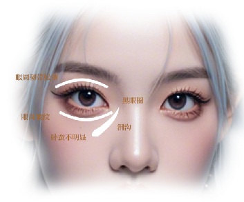 30-35岁:眼皮软组织变薄,因而眼球显得突出,泪沟和其他眼部凹陷进一步加深,出现眼纹;
